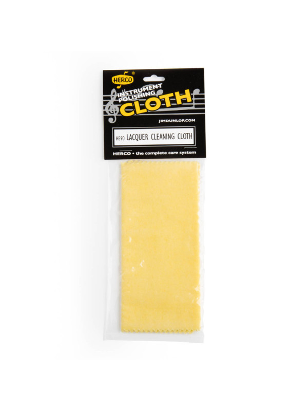 HERCO HE90 je kemijski obrađena dvoslojna krpica za čišćenje lakiranih površina limenih puhačkih instrumenata.